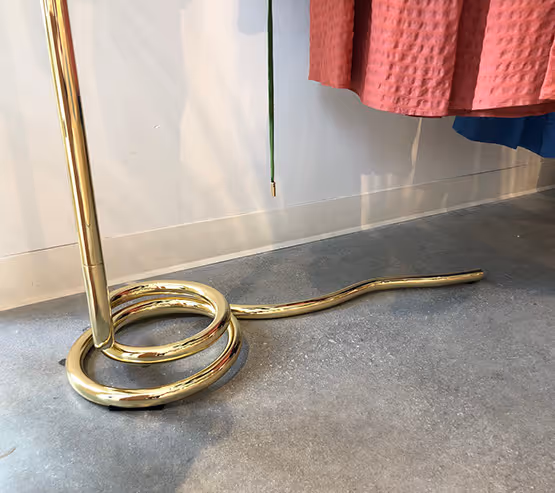 Cult Gaia brought me in to design a set of custom fixtures for a retail pop-up inside Fred Segal. The goal was straightforward: create brand-forward display pieces—racks, pedestals, and stands—that felt sculptural and specific to the label, not just functional retail hardware.There was no formal brief. I started with a piece of wire and shaped the first idea by hand. That turned into a brass rack system, which led to a larger suite of fixtures—all designed to match Cult Gaia’s architectural sensibility without mimicking it. Materials included brass, glass, and wood—elegant but simple, each chosen to carry weight and warmth without overwhelming the product.