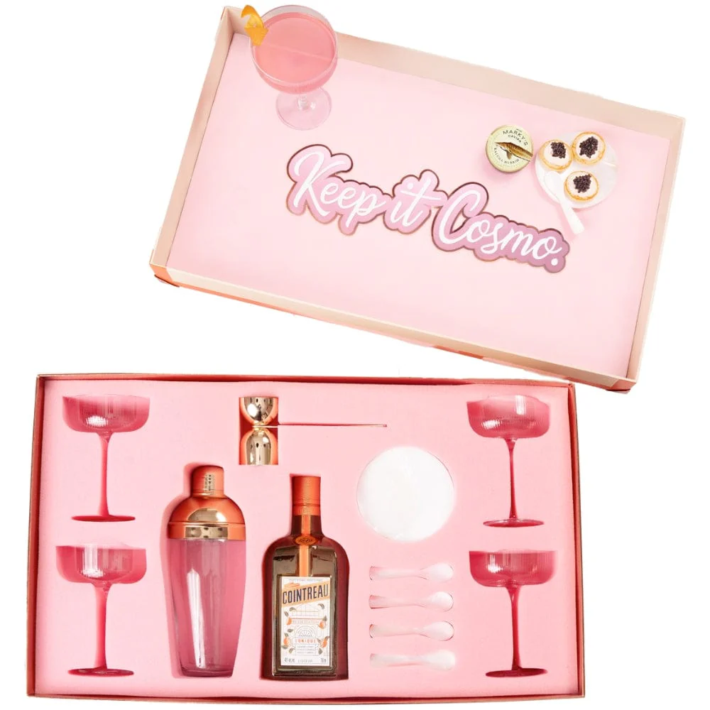 I got to design a gifting set with Cointreau last year that was meant to embody the spirit of the Cosmo, a drink made famous by Madonna, and later Sex in the City's Carry Bradshaw. We included everything needed for a evening of cosmos and caviar. All the supplies, ingredients, glasses and needed accouterment for everything involved.
