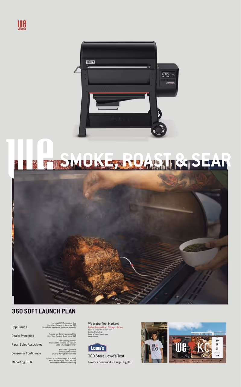 Guests ate food cooked on the products, with each dish tied directly to the grill that made it. I built 3D models of each product, which were integrated into the tabletops—so guests could explore features and design details while they ate. Even the standard product sheets were redesigned to feel clear, tactile, and useful.The work helped Weber see how the brand could speak more fluently to people it had largely ignored—without losing its core. It was a shift in tone, audience, and presence. Not louder. Just broader, smarter, and more aware of who was actually in the room.